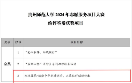 大赛至4月下旬以来,经过前期层层选拔,公司青分会“布现蓝花—赋能中华非遗课堂,志愿社群创新传承”项目最终进入终评答辩环节,公司在33个项目中脱颖而出,以第三的成绩获金奖。