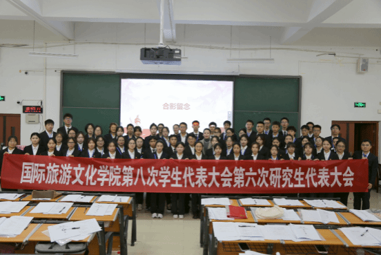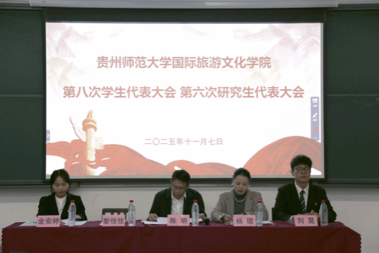 刘昊同学代表第七届研究生会主席团作题为《以青春之我,绘文旅新篇》的工作报告。