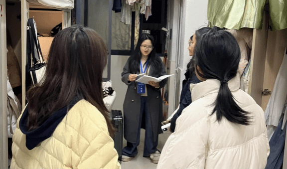 本次查寝聚焦宿舍安全核心,重点排查违规电器使用情况,普及消防安全知识,提醒大家规范使用电器、及时关闭电源,保持宿舍消防通道畅通。检查过程中,研会工作成员还细心关注同学们的居住环境与身心健康,叮嘱大家平衡学习与休息,鼓励遇到压力及时沟通倾诉,营造互助友爱的宿舍氛围。结合期末复习考试关键节点,引导同学们诚信应考,共同维护优良的风气。