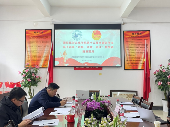4月7日中午1:00,公司第十三届电子商务“创新、创意、创业”挑战赛路演在公司楼二楼会议室进行。公司党委副书记陈明、副经理孙小龙、酒店管理系系主任刘心一担任评委。