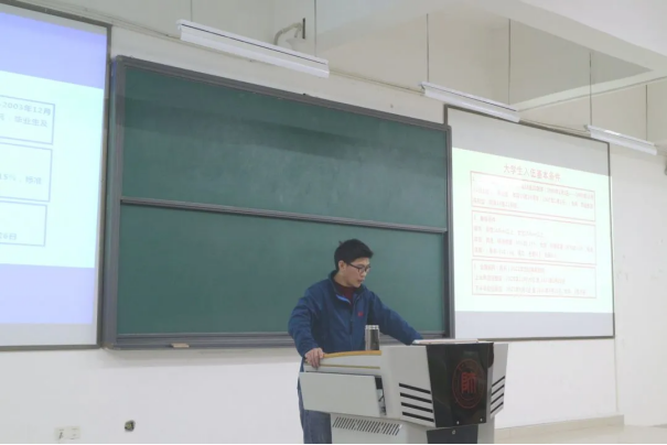 军鹰团退役复学员工宁飞和吴位生两位同学为大家分享了他们的军旅生涯。宁飞同学分享了他在祖国极北之地中俄边境的“黑河好八连”中爬冰卧雪,为祖国站岗、守卫边疆的军旅生活。吴位生同学分享了自己作为一名武警特战兵的4次魔鬼周集训体会。魔鬼式的训练锻炼了体魄,磨练了意志,收获了成长!在他们的宣讲中,有浓浓的战友情、有热血的训练、有军队的精神磨砺,还有个人的成长和思考,充分体现了“青春最美的颜色是迷彩”。同学们认真地听着,颇受感触。