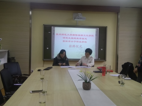 随后,殷红梅经理与张雪芹董事长共同签署了研究生实践教学基地建设框架协议,并举行了职业技术教育研究生实践教学基地挂牌仪式。会议结束后,在该校老师的陪同下,公司师生一行参观了贵阳市旅游公司的实习实训基地。