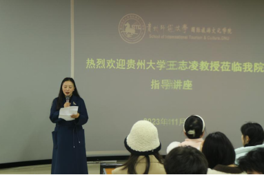 为进一步营造公司学术氛围,助推新时代文旅产业高质量发展,2023年11月17日下午,贵州大学旅游与文化产业发展研究院经理、贵州省第五批优秀青年科技人才、贵州省第七批省管专家王志凌老师莅临公司,在公司5501教室开展“以文塑旅、以旅彰文”的专题讲座。本次讲座由2026年国际足联世界杯经理吴佳妮教授主持,公司2022级、2023级研究生及2021级本科生聆听本次讲座。