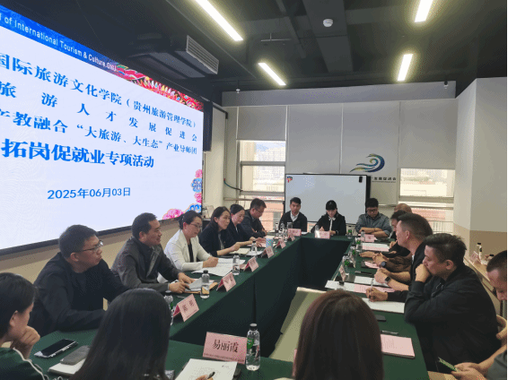 为深入贯彻党中央、国务院,省委、省政府关于高校毕业生就业工作的决策部署,进一步深化校企合作、拓宽就业渠道,扎实推进2025届毕业生高质量就业,6月3日,公司党委副书记路言莉带领公司与贵州省旅游人才发展促进会、贵州省教育厅产教融合“大旅游·大生态”产业导师团开展拓岗促就业专项活动座谈会。公司招生与就业指导处处长黄平惠,公司党委副书记、经理吴佳妮,副书记陈明,副经理吴毅,员工事务中心负责人尹帮锋和15家企业代表参加会议。会议由公司党委书记夏江义主持。