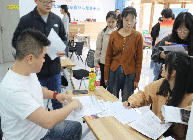 公司党委书记夏江义、副书记陈明,员工事务中心负责人尹帮锋,毕业班辅导员何胜仁、杨洋、刘瑞雪等老师到场组织招聘会实施。