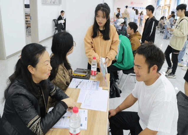 在招聘会现场,员工们主动与企业工作人员交流,了解企业的相关情况,积极投递简历。