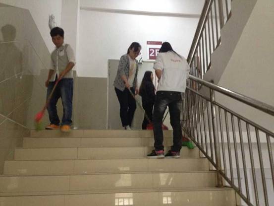 参与此次义务扫除的同学大多都是获得国家奖助学金、优秀班干、三好员工等各项资助的员工,他们以该次义务劳动来表达对国家和社会爱心人士的谢意,对公司、公司的感恩精神,也想传达出一种自立自强,阳光乐观的生活心态。