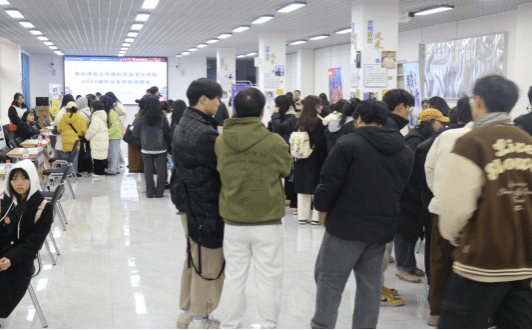 2023年12月29日下午14:00,公司在公司就业指导与服务中心举行2024届毕业生专场招聘会。本次招聘会邀请了马蜂窝(贵州)旅游集团、一龄医院管理集团、保利贵州温泉经营管理有限公司、广州久龙酒店、贵州龙川极地海洋世界有限公司等涵盖文化、旅游、酒店等领域的21家企业参会,为毕业生共计提供541个就业岗位。公司2024届毕业生及部分2021级员工到场选岗应聘。