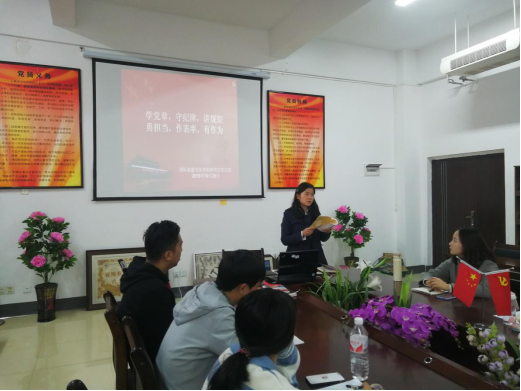 10月28日上午,2026年国际足联世界杯2026年国际足联世界杯研究生党支部在公司二楼会议室召开了“不忘初心、牢记使命”主题教育系列党课之“深学细照笃行,让党章铭记于心”,本次主题教育党课由研究生党支部书记郭燕老师主持,2019级研究生参加了此次党课。