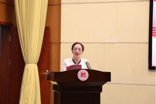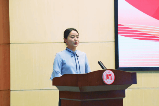 旅游管理系吴洁老师作为教师代表发言,以自身经历解答同学们初到大学对专业的困惑,文旅行业是推动经济发展的引擎、是连接不同文化的桥梁、是现代社会精神疗愈好人情绪调节的重要途径。作为师长,她建议同学们在大学期间坚持学习、多去图书馆;关心身体,多去运动场;关注发展,多去“田野”,祝愿大家新的旅程充实精彩。