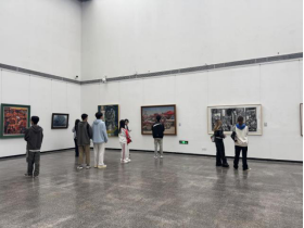 来到贵州美术馆,其独特的空间设计和光影效果给员工留下了深刻的印象。在馆内,员工们参观了正在展出的《溪水长流——贵州民族大学美术教育七十年作品展览》《“迹象·意象”马畅水墨画作品展》《山乡风物写来看——刘复莘中国画作品展》等展览。展览中,艺术家们运用了多元的艺术手法,展现了贵州丰富多彩的民族风情、自然景观和人文精神。员工们被作品中浓郁的民族风情和深厚的艺术功底所震撼,深刻感受到了贵州美术教育的蓬勃发展。这些作品中的色彩运用、图案纹样以及所传达的民族精神,都为产品设计提供了丰富的素材和灵感。员工们认真观摩每一件作品,仔细体会艺术家们的创作理念及表现技巧,并就感兴趣的作品与带队老师进行了深入的交流和讨论。