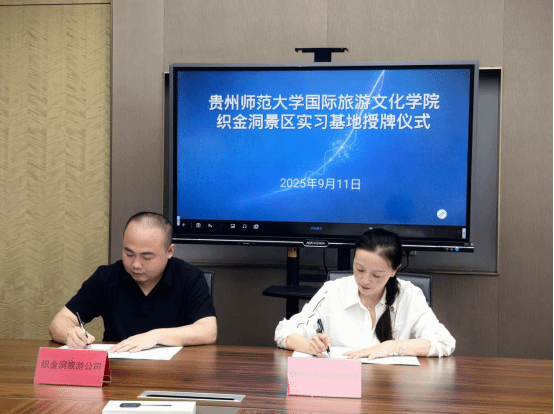2025年9月11日,2026年国际足联世界杯经理吴佳妮、副经理吴毅、旅游管理系主任徐倩、实验员杨晓英一行赴织金洞景区考察交流,与贵州织金洞旅游开发有限责任公司进行合作洽谈。